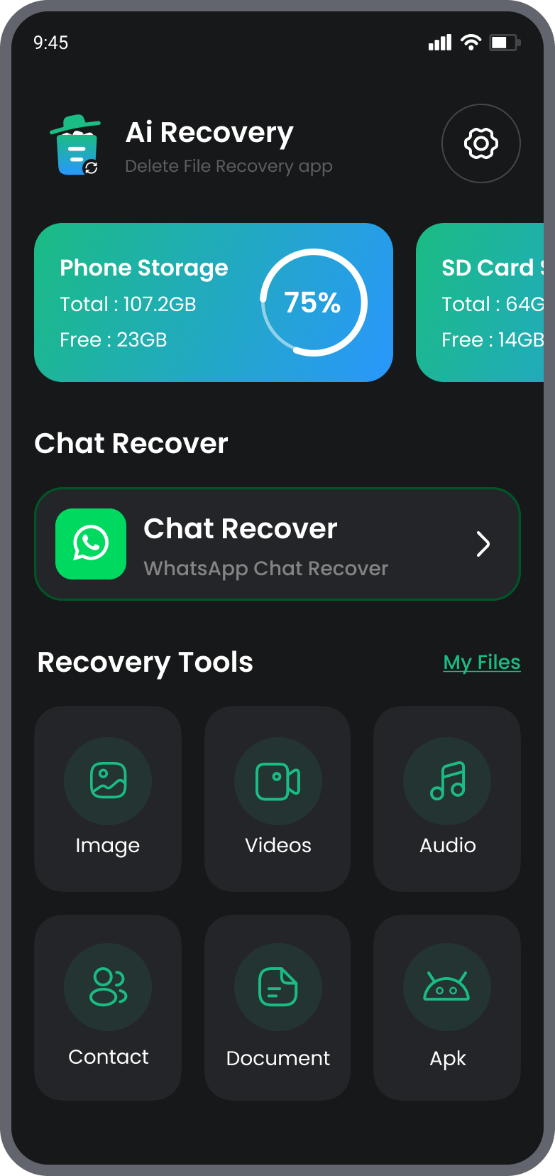 Ai Deleted File Recovery is simple to use and built to handle the difficulties of data retrieval with ease. It's your shop for getting back any deleted data from your android device, including pictures, videos, contacts, audio files, and documents. If you have deleted old photos, videos, or contacts and want to recover them, this app will quickly solve your problem. All Recovery is the best option for a full-featured photo Ai Recovery app! It's a useful file recovery app that allows you to restore deleted photos in bulk with a single click.